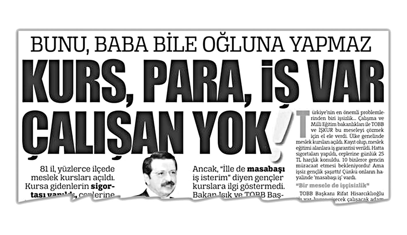 Zaman yazarı Seyfettin Gürsel, ekonominin kötüye gideceğini, bunun da AK Parti’yi zayıflatacağını öne sürdüğü yazısında, işsizliğin artmaya başladığını yazmış. Aynı gün Türkiye’nin manşeti ise bu köksüz yazıya cevap gibi, “İş var, çalışacak adam yok!”