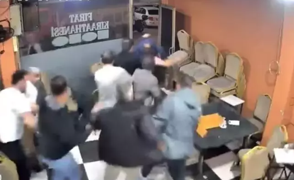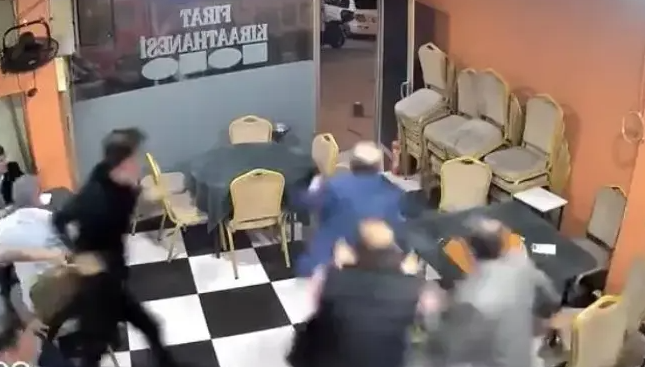 Kahvehanenin güvenlik kamerasına yansıyan görüntülerde, deprem olduğunu düşünen müşterilerin masa ve sandalyeleri devirip panikle dışarı kaçtıkları anlar yer aldı.