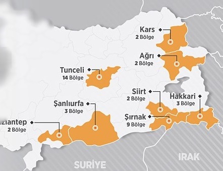PKK saldırılarının artması üzeine şimdiye kadar "güvenlik bölgeleri" ilan edilen şehir sayısı sekize yükseldi.