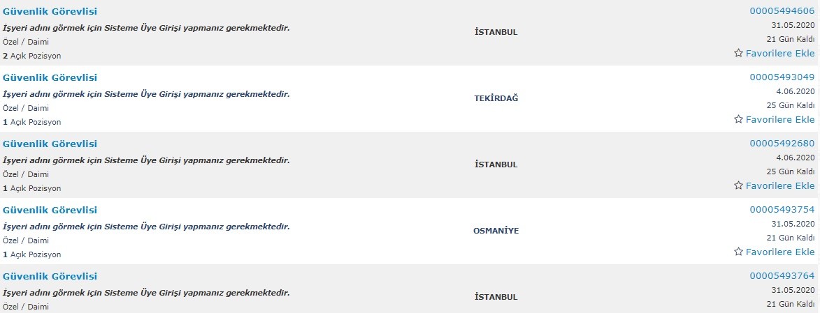 İŞKUR GÜVENLİK GÖREVLİSİ İLANLARI İÇİN TIKLAYINIZ