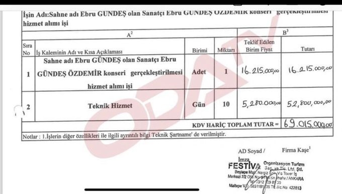 29 Ekim Cumhuriyet Bayramı etkinlikleri kapsamında, vatandaş hizmet beklerken Cumhurbaşkanlığı adaylığı kavgasıyla meşgul olan Mansur Yavaş bir de milletin 69 milyon TL’sini 2 saatlik konsere verdi. Daha önce bu haberleri yalanlayan ABB, konser ücreti olarak Ebru Gündeş’e 16 milyon 215 bin TL verirken, 52 milyon 500 bin TL’yi de 10 günlük kurulum bedeli olarak konserin kurulumunu yapan şirkete ödediği ortaya çıktı.