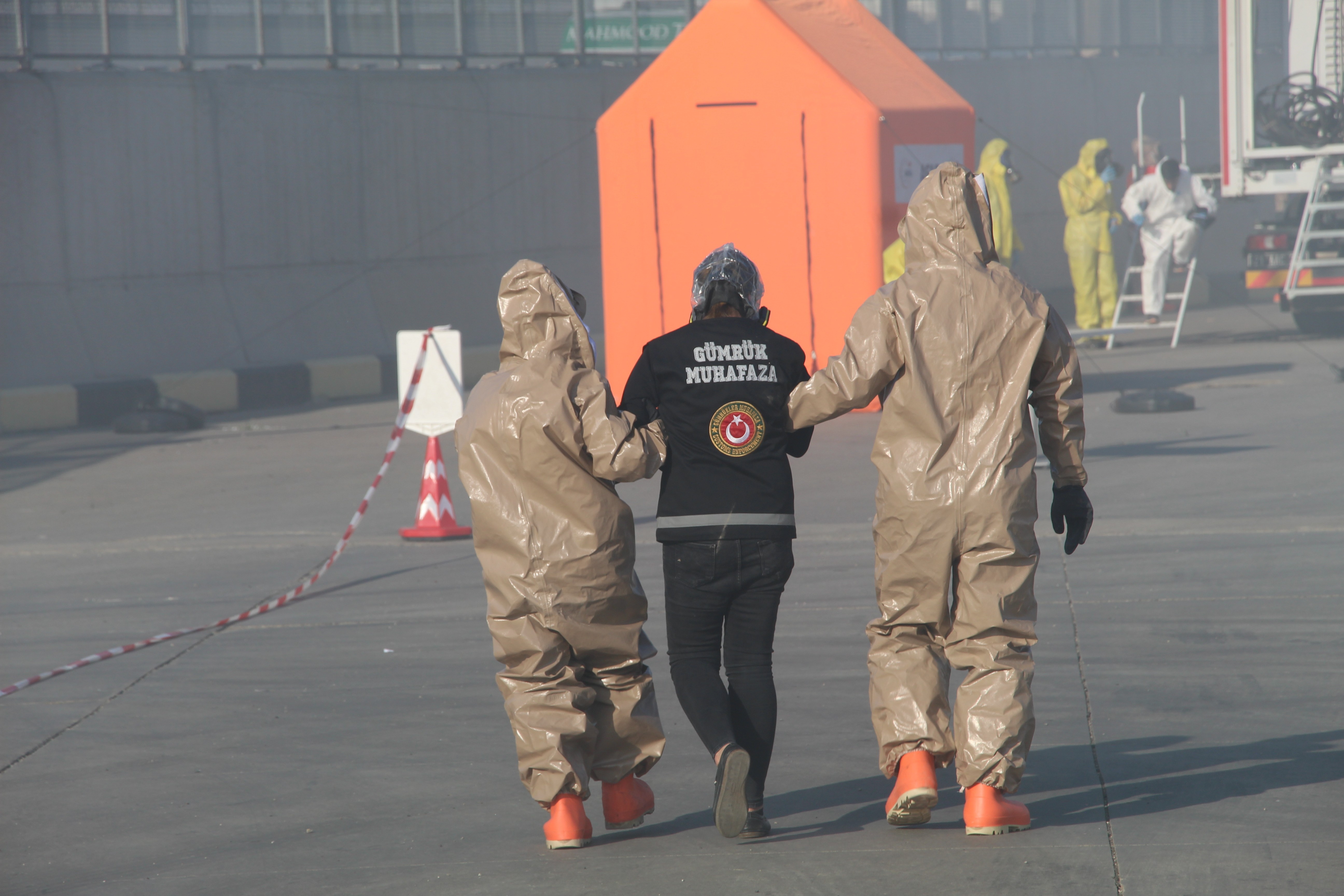 Şırnak İl Afet ve Acil Durum Müdürü Muzaffer İşlek de, “Şırnak ilimiz için bir ilki gerçekleştirdik. Habur Sınır Kapısı Türkiye’nin en büyük sınır kapılarından bir tanesidir ve Şırnak il sınırları içinde bulunmaktadır. Yaklaşık günde 4 bin ila 5 bin aracın giriş-çıkış yaptığı Habur Sınır Kapısı'nda her türlü madde taşıyan araçlar bulunmaktadır. Bu maddelerin içinde kimyasal madde gibi bir takım tehlikeli maddelerin de taşındığını bildiğimiz için burada çalışanlar için bir farkındalık oluşturmak adına Kimyasal Biyolojik Radyolojik Nükleer (KBRN) tatbikatı gerçekleştirdik. Tatbikat çerçevesinde nitrik asit yüklü bir tankerin kaza yapması sonucu etrafa yayılan kimyasal ajanlara müdahale edilmesi. Irak-Suriye sınırında sınırın sıfır noktasında tatbikatı gerçekleştirmemizi çok anlamlı buluyorum. Burada çalışan yüzlerce gümrük muhafaza personellerimiz için farkındalık oluştu. Toplamda 12 kurum, 120 personelle Kimyasal Biyolojik Radyolojik Nükleer (KBRN) tatbikatını gerçekleştirdik” ifadelerine yer verdi.
