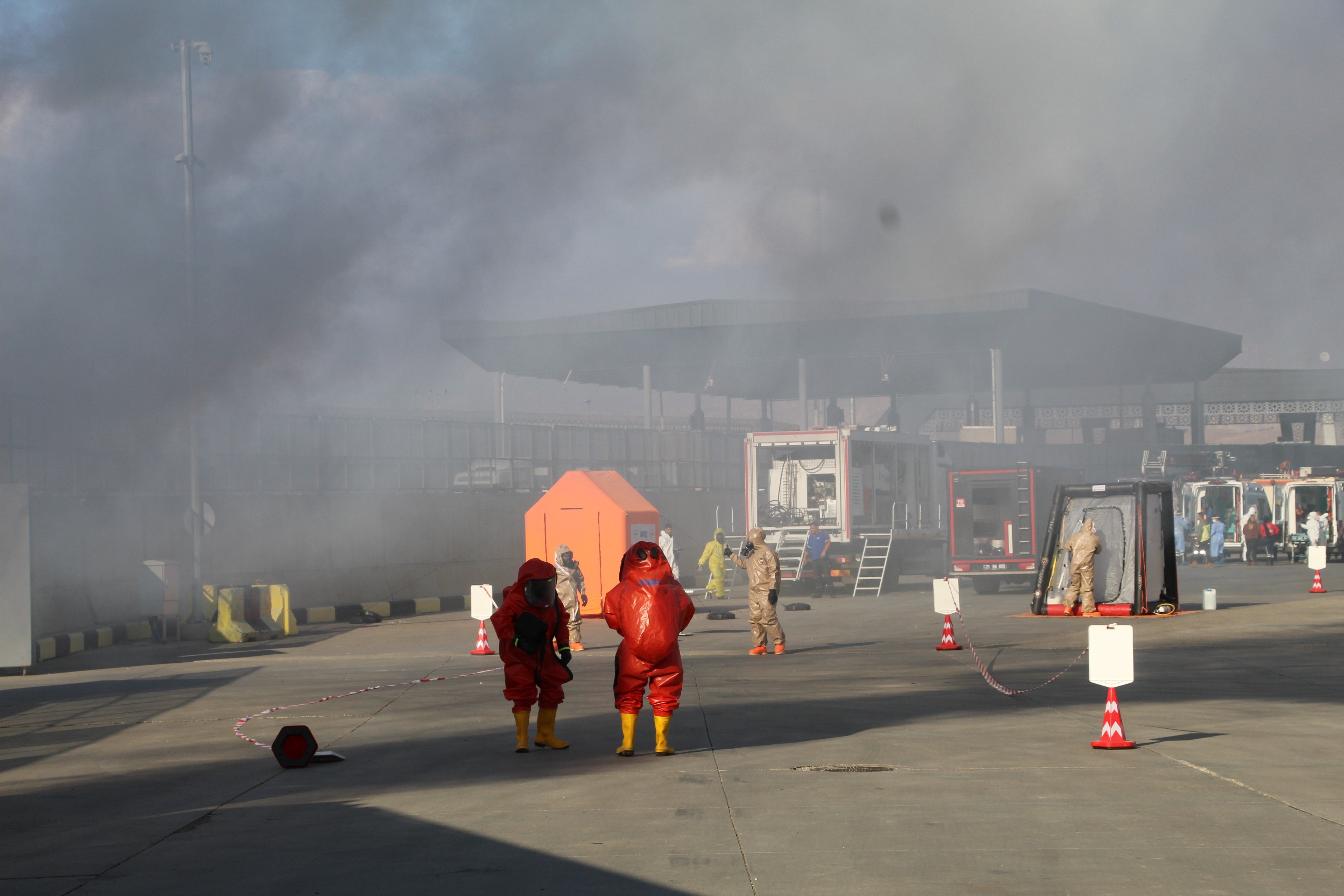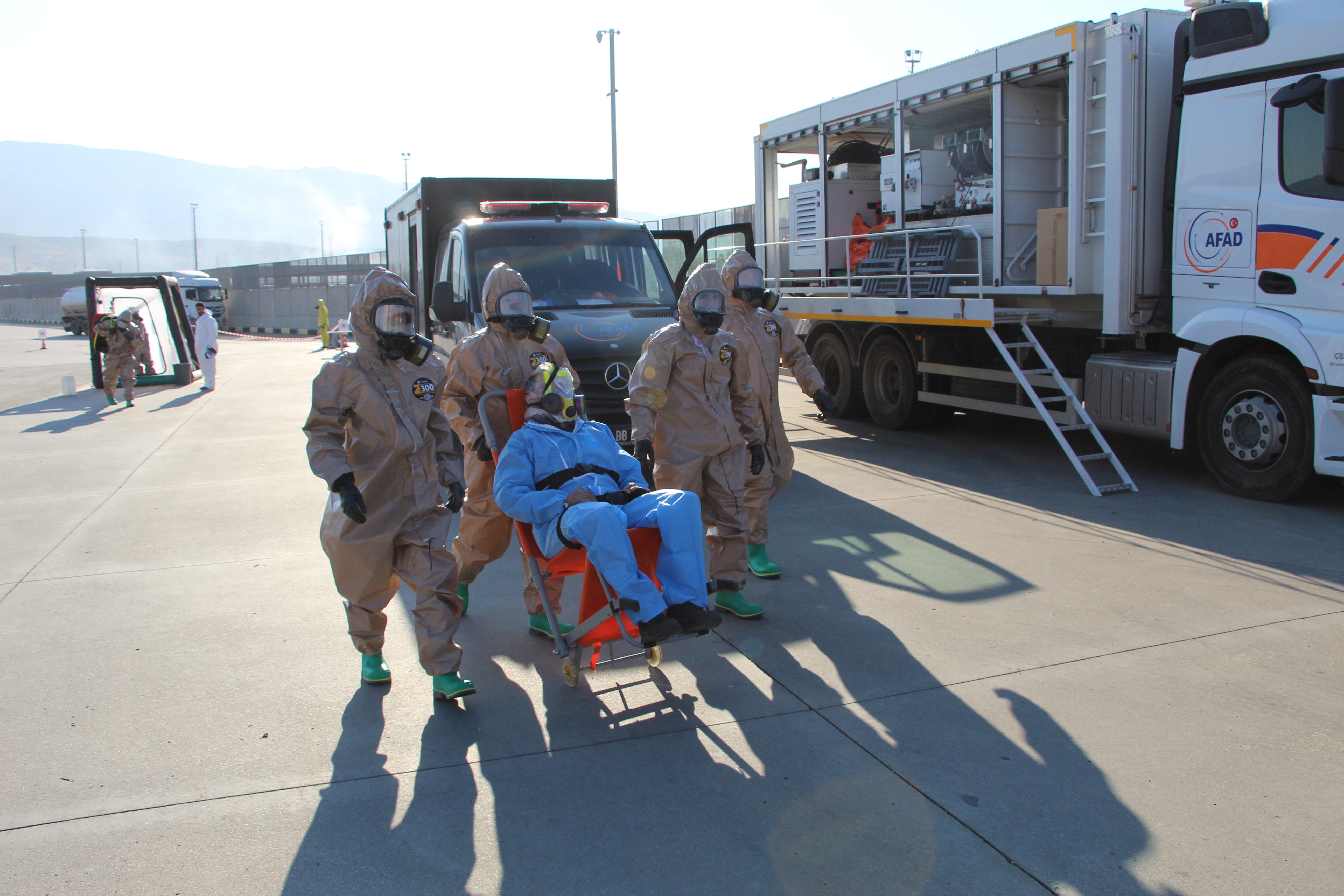 Tatbikat, kimyasaldan kirlenmiş bölgede görev yapan kurtarma personeli ve arazinin temizliğiyle tamamlandı.