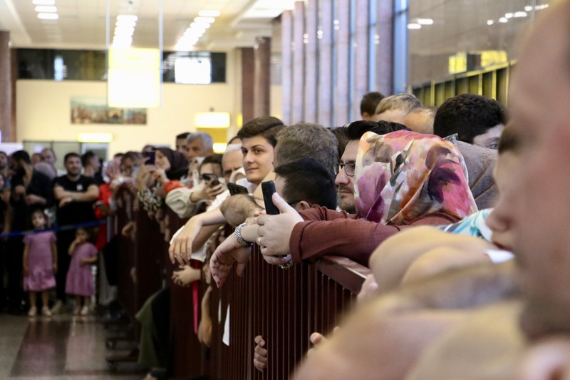 Hacdan dönen amcasıyla kucaklaşarak hasret gideren Yağız Ahmet Canbolat ise havalimanına Osmaniye'den, Kahramanmaraş'tan, Ankara'dan geldiklerini ifade ederek, " Sürpriz karşılama yapmak için geldik. Duygulandık biraz." diye konuştu.