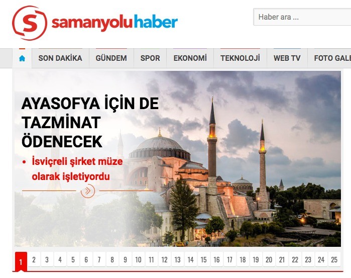 Samanyolu Haber, Ayasofya Camii'nin Türkiye'nin tazminat ödemesine neden olduğu iddia edilerek rahatsızlıklarına kulp buldu.