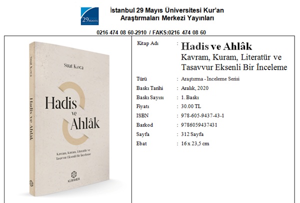 Dr. Öğretim Üyesi Suat Koca'nın, Hadis ve Ahlak kitabının 1. baskısı çıktı.