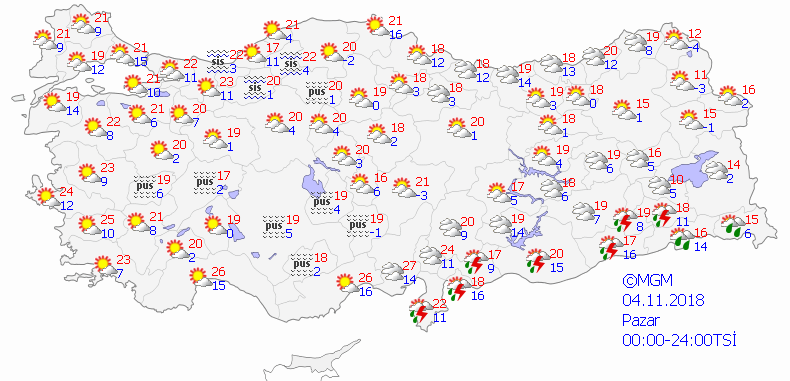 4 KASIM 2018 PAZAR HAVA DURUMU