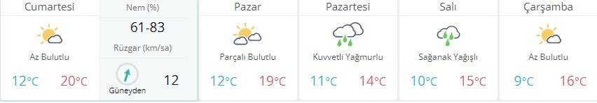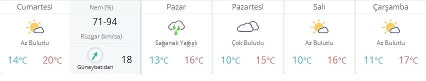 Pazar günü Marmara'da, pazar, pazartesi ve salı günleri ise Karadeniz, İç Anadolu ve Doğu Anadolu'nun kuzeyi ile doğusunda görülmesi beklenen yağışların, Karadeniz'in kıyı kesiminde kuvvetli yağmur ve sağanak, pazartesi ve salı günleri ise Doğu Karadeniz'in iç kesimleri ile Doğu Anadolu'nun kuzeydoğusunda karla karışık yağmur ve kar şeklinde olması öngörülüyor.