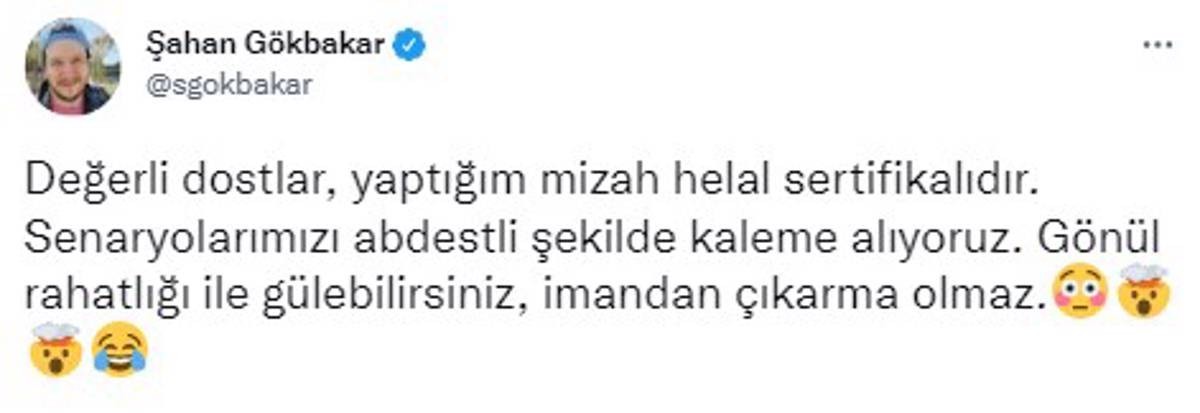 "Değerli dostlar, yaptığım mizah helal sertifikalıdır. Senaryolarımızı abdestli şekilde kaleme alıyoruz. Gönül rahatlığı ile gülebilirsiniz, imandan çıkarma olmaz."