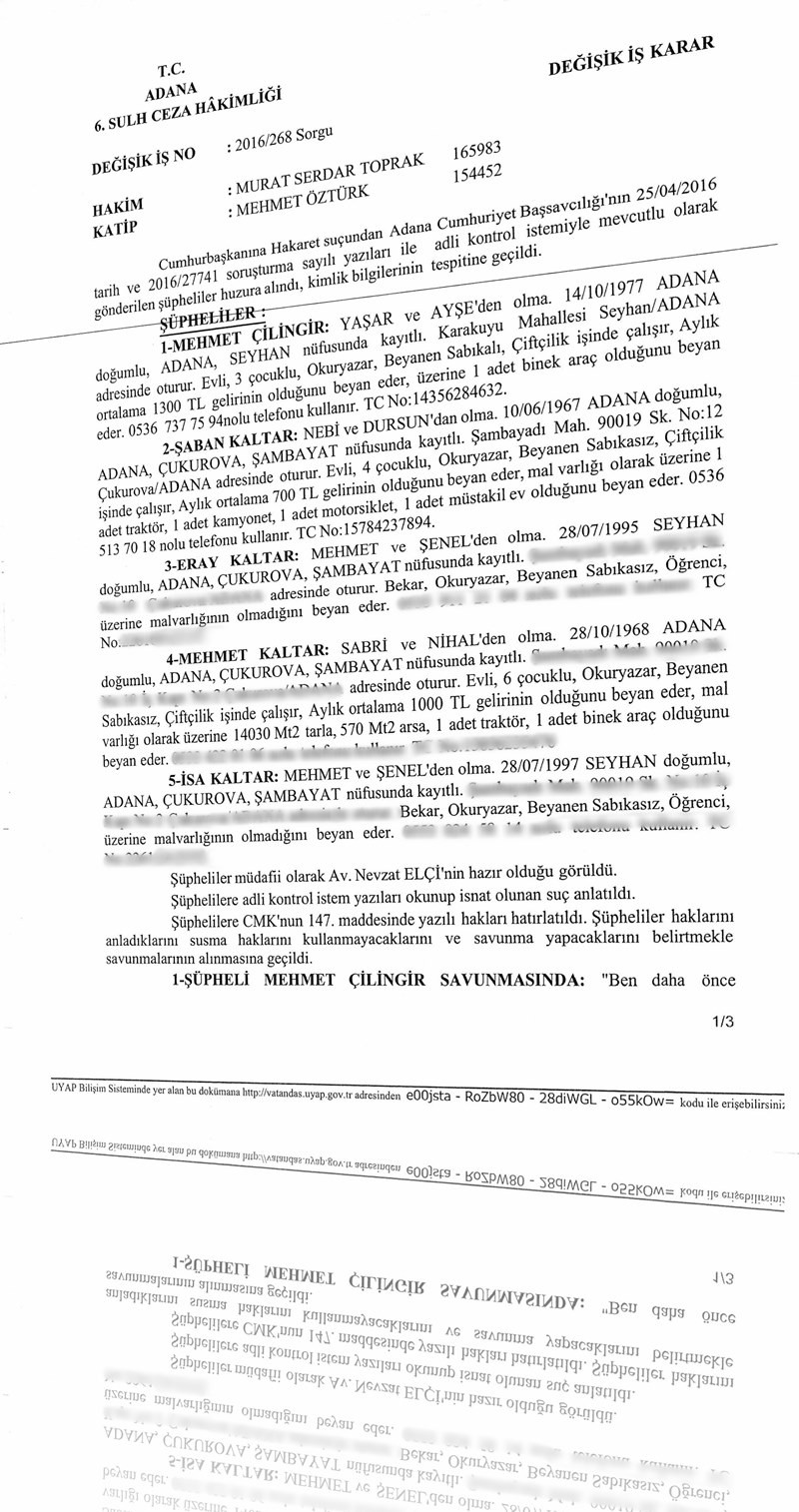 Adana 8. Asliye Ceza Mahkemesi Hakimi Murat Serdar Toprak tarafından ilk duruşmada tuhaf bir şekilde hapse mahkum edilen Dönay Şengül'ü hedef gösterip hakkında savcılığa suç duyurusunda bulunan avukat Volkan Hüseyin Ertem’in sosyal medya adresi üzerindenCumhurbaşkanı Erdoğan’a küfürler ettiği, AK Parti iktidarına yönelik hakaretlerde bulunduğu, merhum yazarımız Hasan Karakaya’ya çirkin sözler sarf ettiği ve 16 Nisan referandumunun ardından halkı sokağa dökmek için provokatif mesajlarpaylaştığı ortaya çıkmıştı.