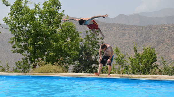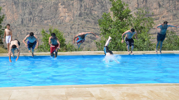 Yatırımcıların ilgisini çeken Çukurca'da, Hakkarili girişimciler Naim Derin ve Melih Parlak'ın ilçeye 5 kilometre uzaklıktaki dağ yamacında yaptığı yarı olimpik havuz, vatandaşları derelerde serinlemekten kurtardı.