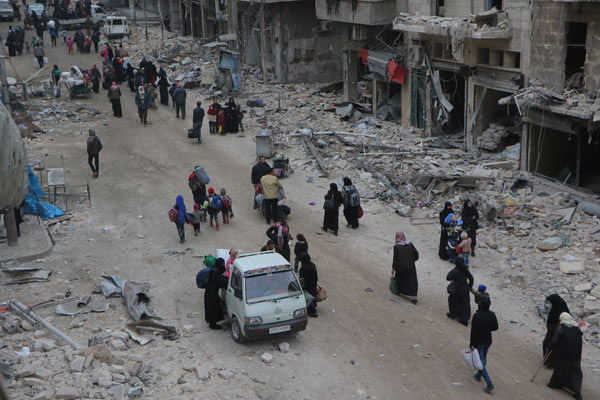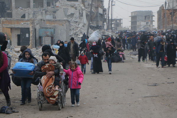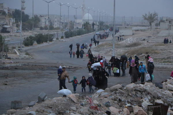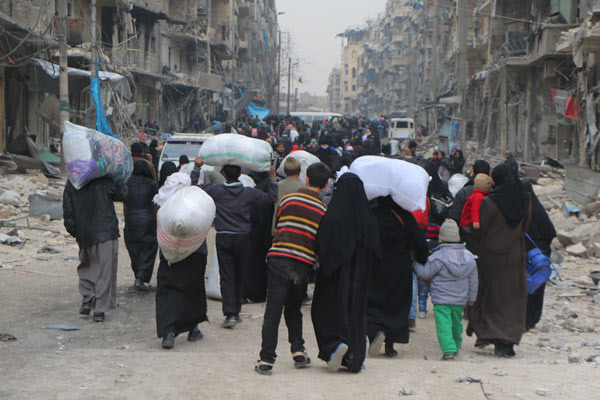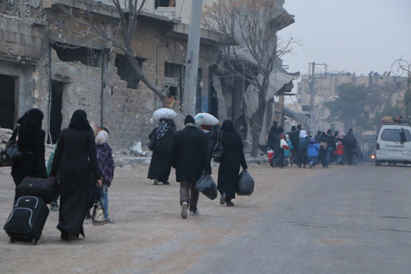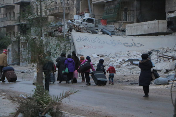 Rejim ve Rusya'nın yoğun bombardımana tuttuğu Halep'te kaçış sürüyor. Yüzlerce kişi kafileler halinde yollara döküldü, harabeye dönmüş sokaklardan kimi yürüyerek kimi de tekerlekli sandalyeyle geçti. Çatışmalardan kurtulanlar bir parça yiyecek için birbirini ezdi. Ordu tarafından dağıtılan yardım poşetlerinde Rusça yazılar dikkat çekti. Çatışma bölgesinden kurtulmayı başaran yüzlerce sivil ise rejim güçleri tarafından tutuklandı. Aileler yakınlarından haber alamıyor.