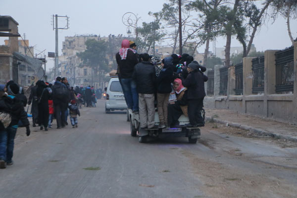 Harabeye dönmüş sokaklardan geçenler Tarik el Bab, Şear, Cezmetli, Müyesser, Eski Halep, Bustan el Kasr, Seyf el Devle, Selahaddin ve Sükkeri semtlerine göç etti. Ellerinde bavullarla yürüyen sivillerin arasında bisiklet veya at arabasıyla ilerlemeye çalışanlar da vardı. Bazı Halepliler ise tekerlekli sandalyesiyle kaçmayı denedi.