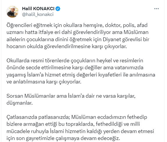 Konakcı Hoca, sosyal medya hesabından yaptığı paylaşımda şu ifadeleri kullandı: