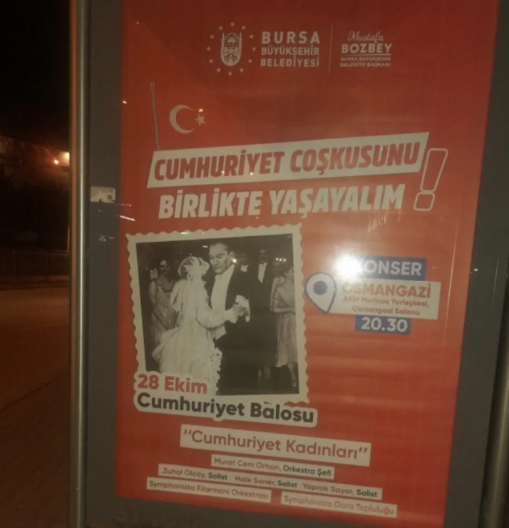 Bozbey, 28 Ekim'de düzenlenecek olan Cumhuriyet balosu için afişlerle şehirde tanıtım yaptırmaya başladı.