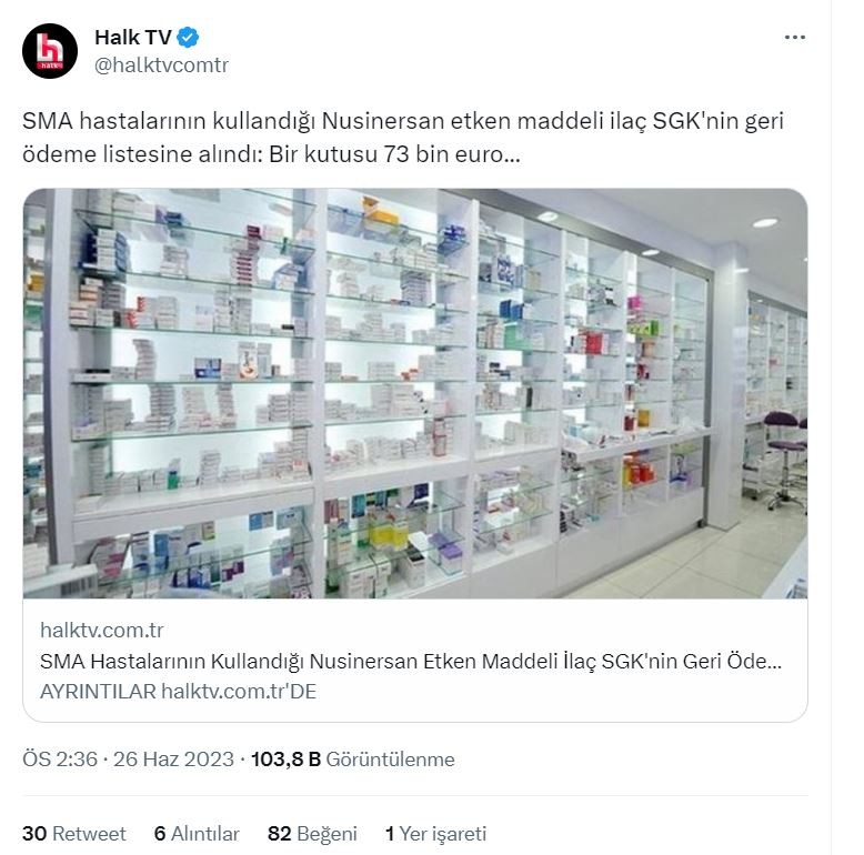 SMA Hastalarının kullandığı Nusinersan etken maddeli ilaç SGK'nin geri ödeme listesine alındı. AK Parti'nin çabalarıyla insanlara verilen bu hizmeti Halk TV'de kabul etmiş oldu.