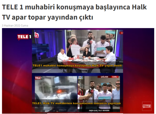Tele 1 yöneticileri internet haber sitesinden Halk TV'yi hedef aldı. Haberde, "TELE 1 muhabiri konuşmaya başlayınca Halk TV apar topar yayından çıktı" denildi.