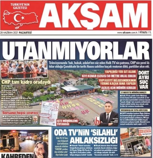 AKŞAM, CHP'lilerin kaçak restoranını önceki gün manşetine taşıdı.