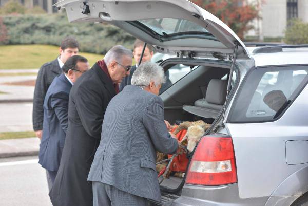 Basın açıklaması sırasında ise koç yerlere dışkısını yaptı. Basın açıklamasının ardından meclis bahçesinde koçu gezdiren Öğüt, ardından jipin bagajına konan koçu başından öptü.