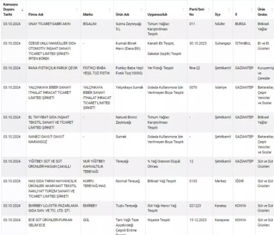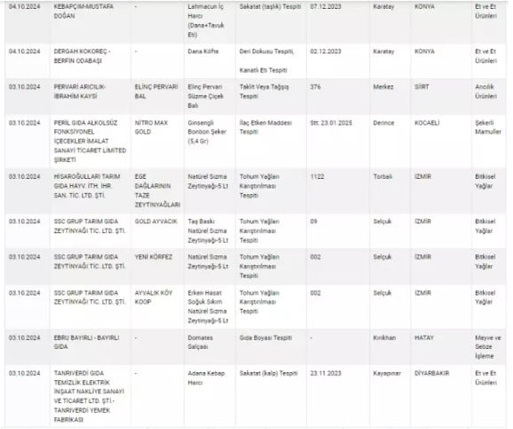 Bakanlığın "guvenilirgida.tarimorman.gov.tr" adresinden herkes hileli veya halk sağlığını riske atacak gıda satanların kim olduğunu görebilir. Bakanlığın paylaştığı hileli zeytinyağı listesini de sizler için tamamını derledik.