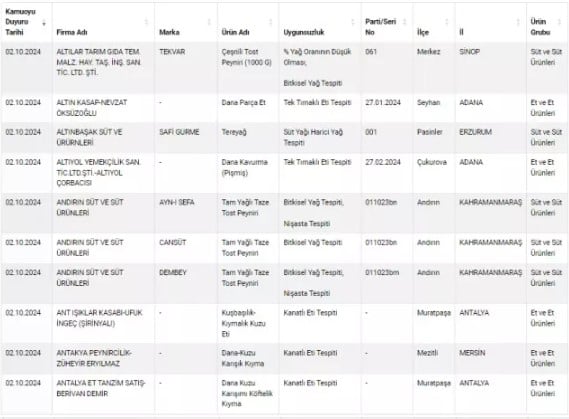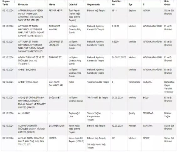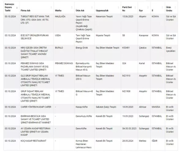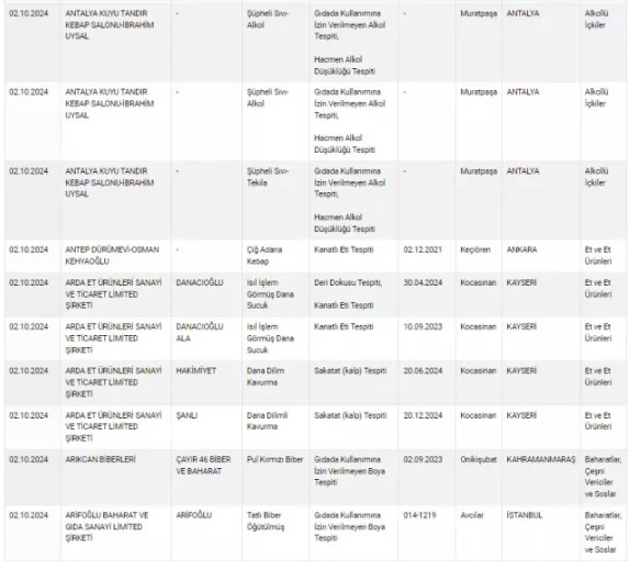 Tarım ve Orman Bakanlığı, hileli ve halk sağlığına zarar veren firmaları ifşa etmeye başladı. Her türlü gıda ürünün yer aldığı ifşa listelerinde özellikle birçok şirketin veya lokantanın et ürünlerine domuz eti karıştırdığı da ortaya çıktı. Türkiye'nin tanınmış börekçilerinin de kıymalık börek adı altında kanatlı hayvan yani tavuk eti karıştırdığı öğrenildi.