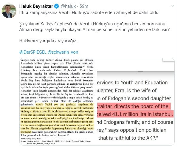 CHP'li Veli Ağbaba, Twitter'dan yaptığı paylaşımda, Ekrem İmamoğlu'nun büyük tepki çeken İBB'nin veri tabanının kopyalanması talimatına ilişkin, "AKP neden mahkemeye başvurup kayıtların yedeklenmesini engellemek istiyor? Cumhurbaşkanı Erdoğan'ın damadı Selçuk Bayraktar'ın mütevelli heyeti başkanı olduğu T3 Vakfına 41.1 trilyon lira destek verilmiş." iddiasında bulunmuştu. CHP'nin bu çirkin iftirasına destek her zamanki gibi Almanya'dan geldi.