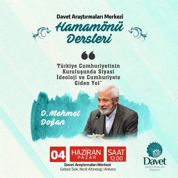 Devlet Araştırmaları Merkezi Hamamönü Dersleri, 4 Haziran Pazar saat 12.00'de gerçekleştirilecek.