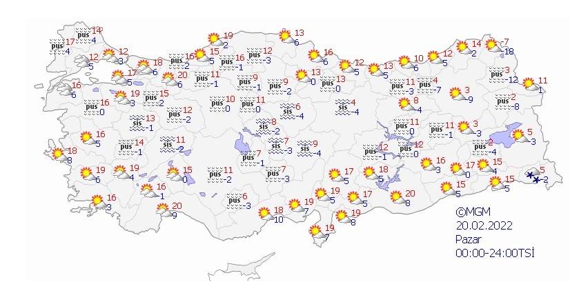 Meteoroloji Genel Müdürlüğü tarafından yapılan son değerlendirmelere göre: Orta Karadeniz, Doğu Karadeniz kıyıları ile Mersin'in batı ilçeleri, Karaman, Aksaray, Nevşehir, Yozgat, Sivas çevreleri ile gece saatlerinden sonra Hakkari çevrelerinin yağışlı geçeceği bekleniyor. Yağışların kıyılarda yağmur ve sağanak, iç kesimlerde karla karışık yağmur ve kar şeklinde görüleceği tahmin ediliyor. Akdeniz Bölgesi'nin yüksek kesimlerinde (Toros Dağları), İç Anadolu'nun güneyinde ve doğusunda (Konya, Karaman ve Niğde'nin Toros Dağları kesimi ile Kayseri ve Sivas'ın yüksek kesimleri), Karadeniz Bölgesi'nin iç ve yüksek kesimleri ile Doğu Anadolu Bölgesi'nde yüksek kar örtüsü bulunan eğimli yerlerde çığ riski bulunmaktadır.