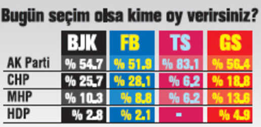 Galatasaray taraftarının siyasi parti tercihi şöyle oldu: