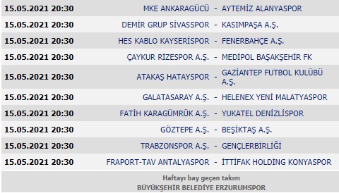 Koronavirüs salgını sebebiyle 2019-2020 sezonunda hiçbir takım ligden düşürülmedi. TFF 1. Lig’den gelen 3 ekiple birlikte 2020-2021 sezonu Süper Lig’de 21 takımla oynandı. Bu sebeple 2020-2021 sezonu sonunda ligden 4 takım düşecek. Süper Lig’e veda eden ilk ekip Yukatel Denizlispor oldu. 11 Mayıs Salı günü oynanacak maçların sonucuna göre düşme potasında bulunan Gençlerbirliği, Büyükşehir Belediye Erzurumspor ve MKE Ankaragücü lige veda edebilir.