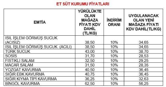 Hazine ve Maliye Bakanı Albayrak enflasyonla mücadele kapsamın hükümetin atacağı adımları paylaştı. Hazine ve Maliye Bakanı Berat Albayrak enflasyonla mücadele programını açıkladı. Albayrak, Atatürk Orman Çiftliği, Et ve Süt Kurumu ve Toprak Mahsülleri Ofisi'nin fiyatlarda indirime gideceğini söyledi. Atatürk Orman Çiftliği tarafından üretilen 14 kalem üründe bugünden geçerli % 10'luk indirim yapılacak. Et Süt Kurumu tarafından üretilen 10 kalem üründe bugünden geçerli % 10'luk indirim yapılacaktır. TMO tarafından pirinç çeşitleri piyasadaki perakende fiyatlarının %20-40 altında satmaya devam edilecek. Enflasyonla mücadele programı kapsamında Carrefour, Migros, BİM, Şok ve Metro marketler zincirinde, 50 üründe yüzde 10 indirim kararı aldı.