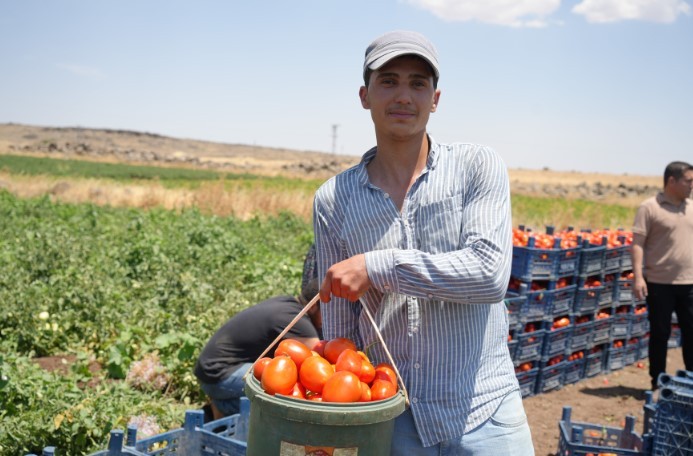 Çağlı, “45 derece sıcaklığın altında zorlu mesaimiz başladı. Dönüm başına 15 ton rekolte bekliyoruz. Geçen sene domatesi tarlada 5 TL'den satıyorduk, bu sezon da aynı fiyattan alınıyor, marketlerde ise 25 TL'ye satılıyor” dedi.