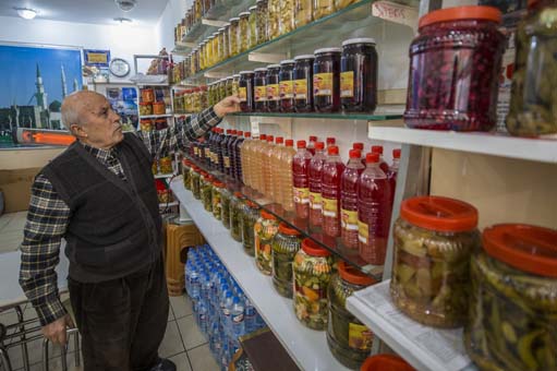 Kayseri'de hastalanan bir arkadaşından devraldığı malzemelerle 45 yıl önce turşuculuğa adım atan Bayram Ali Aydoğan, el arabasında başlayan turşuculuğu dükkanında sürdürüyor.