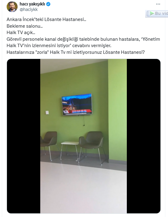 Hastalarına zorla Halk TV izleten hastane! Hacı Yakışıklı paylaştı