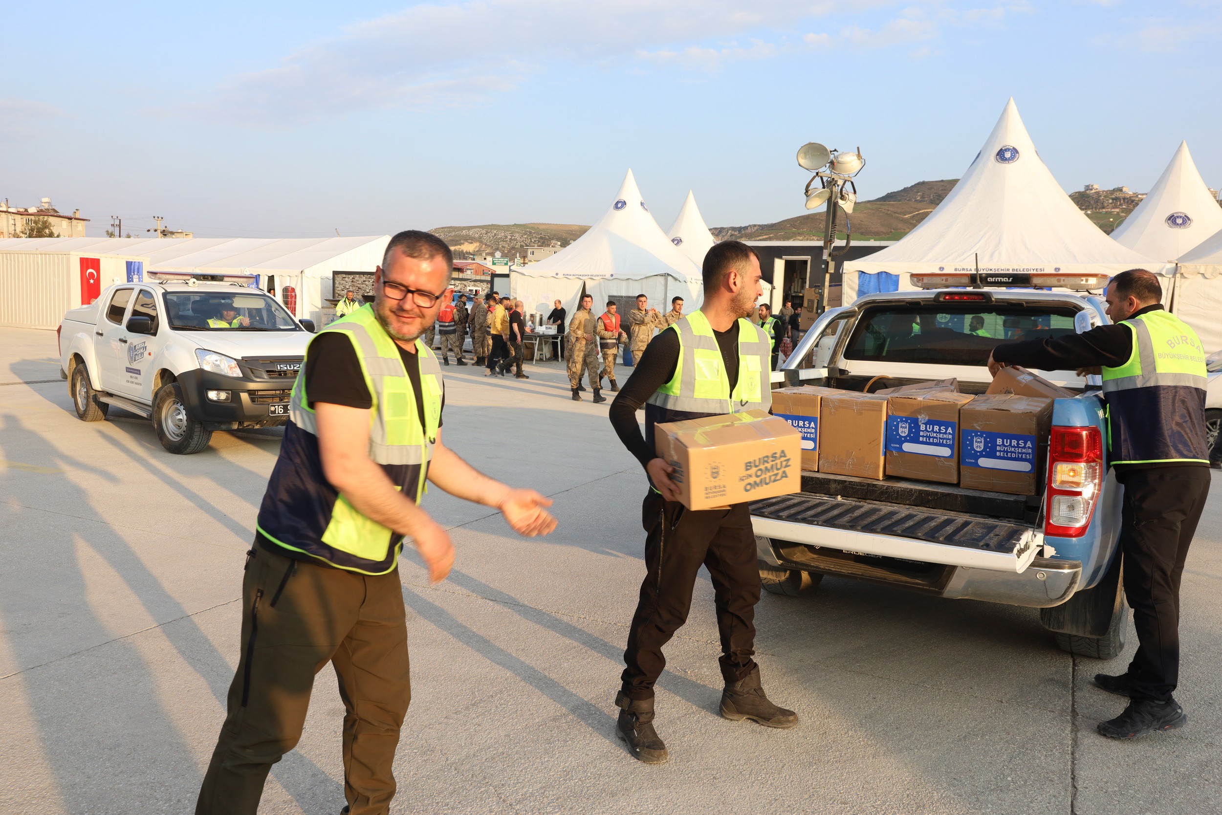 Hatay’da Türkiye genelinden gelen yardımların dağıtımı, geçici yaşam alanlarının oluşturulması ve seyyar tuvaletlerin kurulması görevlerini üstlenen Bursa Büyükşehir Belediyesi, bir hayırsever tarafından gönderilen bebek ve çocuk giyim malzemelerini Sahra Hastanesi yetkililerine teslim ederek ihtiyaç duyulan malzemeleri vatandaşlara ulaştırmış oldu.