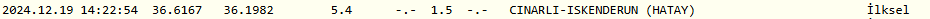 Hatay’ın İskenderun ilçesi Çınarlı bölgesinde, 19 Aralık 2024 tarihinde saat 14:22:54’te 1.5 büyüklüğünde bir deprem meydana geldi.