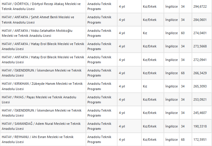 Hatay liseleri taban puanı 2021, Hatay liseleri başarı sıralaması ve liseleri kontenjanları nelerdir?