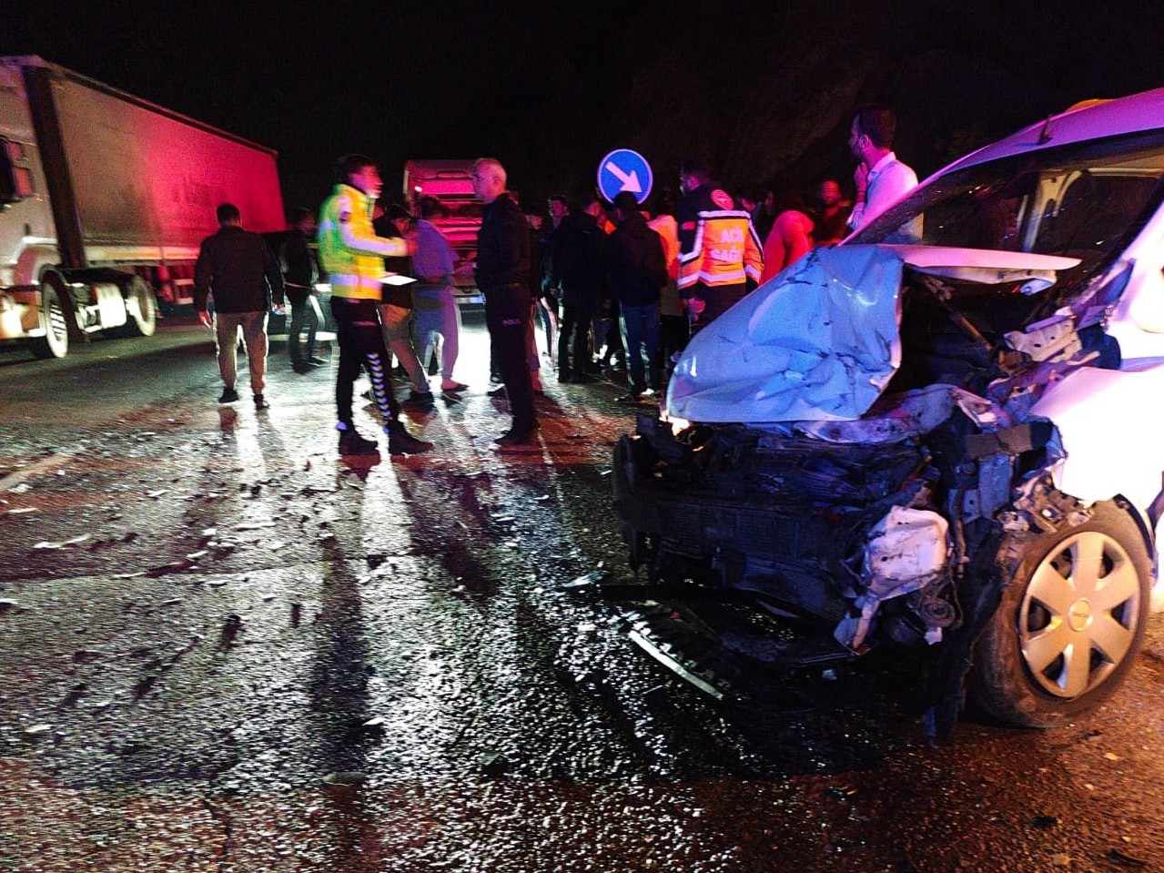 Çarpışmanın şiddetiyle araçlarda bulunan bazı kişiler otomobil içinde sıkıştı. Kazayı görenlerin ihbarı üzerine olay yerine kısa sürede itfaiye ve sağlık ekipleri sevk edildi.
