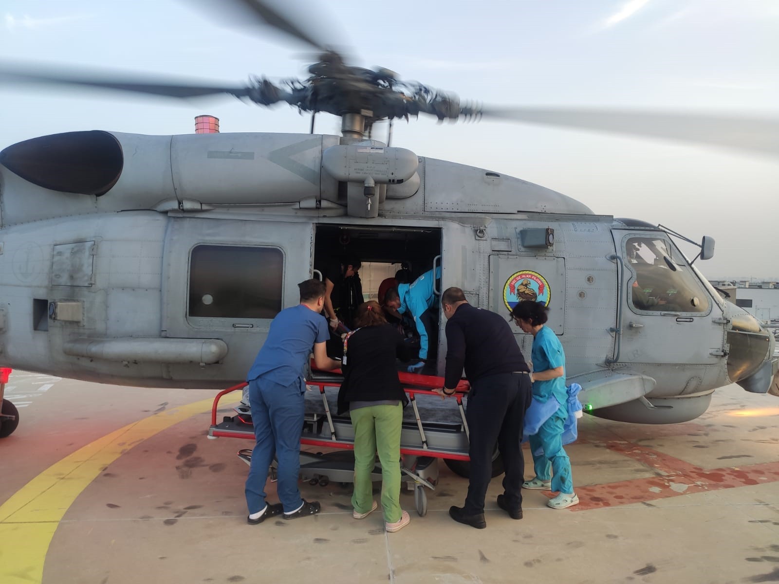 Hatay Devlet Hastanesinde tedavi gören bir vatandaş, TCG Gaziantep gemisinde konuşlu askeri helikopterle Adana Şehir Hastanesine sevk edildi.