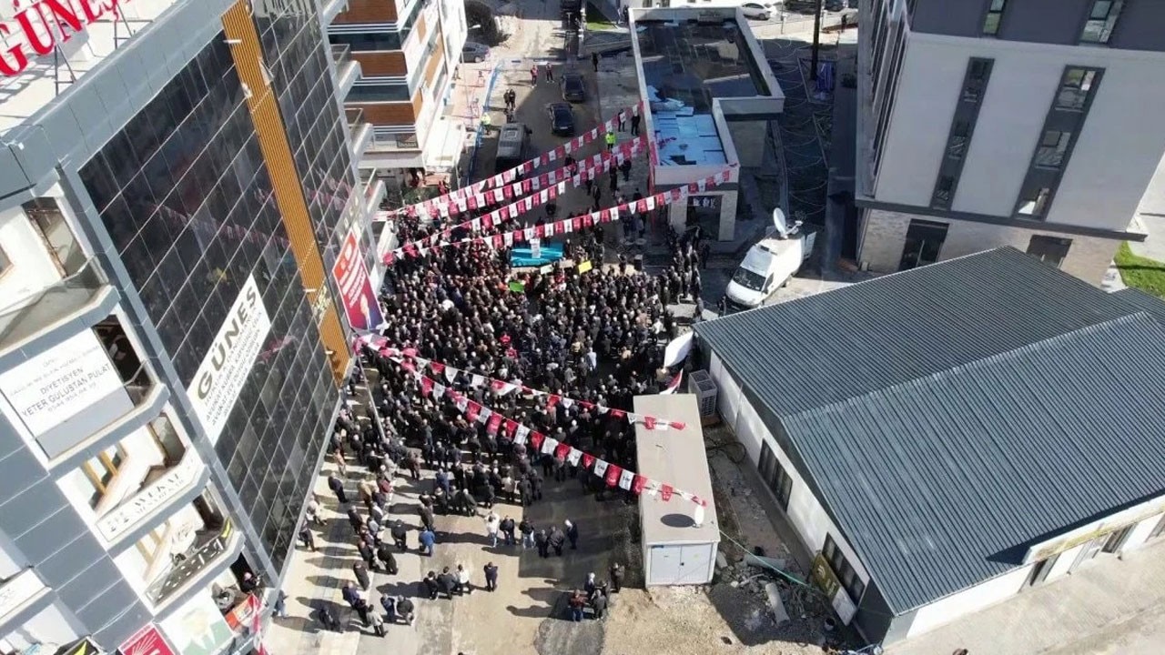 CHP Adıyaman İl Başkanlığı önünde halka hitap eden CHP Genel Başkanı Özgür Özel'in programına sadece binadaki personel katıldı.