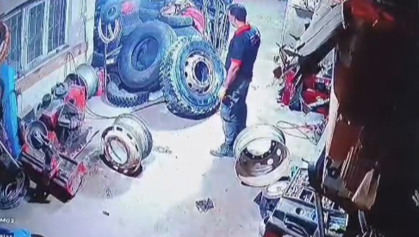 Öte yandan, Hüseyin Ketme’nin kamyon lastiğine kompresörle hava bastığı ve lastiğin şiddetli şekilde patladığı anlar güvenlik kamerasına yansıdı.