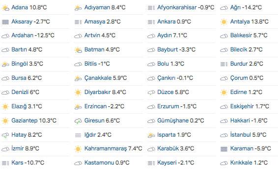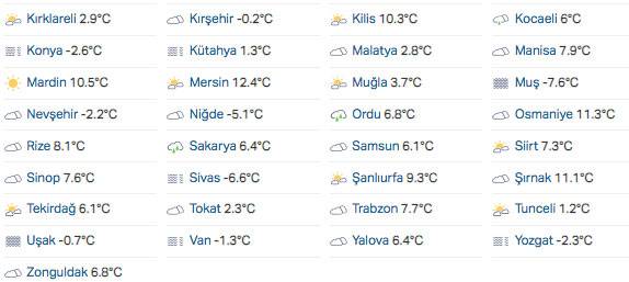 İstanbul'da Anadolu Yakası haftaya yağışla başlayacak. Hava sıcaklığı ise 12-13 dereceye kadar yükselecek. Ankara'da 3 gün boyunca yağış yok, parçalı ve az bulutlu bir hava hakim olacak. İzmir'de hava sıcaklıkları, bugün 13, yarın 15, çarşamba günü de 17 dereceye kadar çıkacak. Doğu Anadolu ve Doğu Karadeniz'in yüksek kesimlerinde çığa karşı tedbirli olunması da istendi.