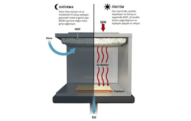 Massachusetts Institute of Technology (MIT) makina mühendisliğinde görevli Evelyn Wang ve California Üniversitesi kimya bölümünden Omar Yaghi tarafından birlikte icat edilen mekanizmaya ait makale geçtiğimiz günlerde Science dergisinde yayımlandı.