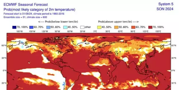 Meteoroloji Genel Müdürlüğü'nün yine ECMWF'nin tahminleri üzerinden uzun vadeli mevsimlik tahmin verilerine göre eylül ayında Türkiye için hava sıcaklığının iç ve güneybatı kesimlerde mevsim normallerinin 1 ila 2 derece üzerinde, diğer yerlerde ise mevsim normallerinin 0,5 ila 1 derece üzerinde seyredeceği bekleniyor. Yağışın da yurt genelinde mevsim normalleri civarında gerçekleşeceği öngörülüyor.