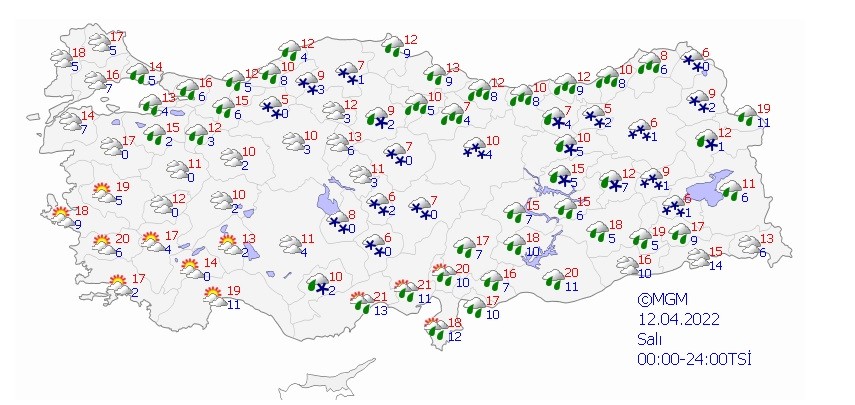 Türkiye'nin büyük bölümünde görülmesi beklenen yağışların ise zamanla kuzey, iç ve doğu bölgelerde yüksek kesimler başta olmak üzere yer yer karla karışık yağmur ve kar şeklinde etkili olacağı tahmin ediliyor.