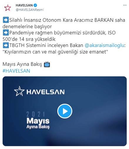 HAVELSAN'ın resmi sosyal medya hesabından yapılan videolu paylaşımda "Silahlı İnsansız Otonom Kara Aracımız BARKAN saha denemelerine başlıyor" denildi.