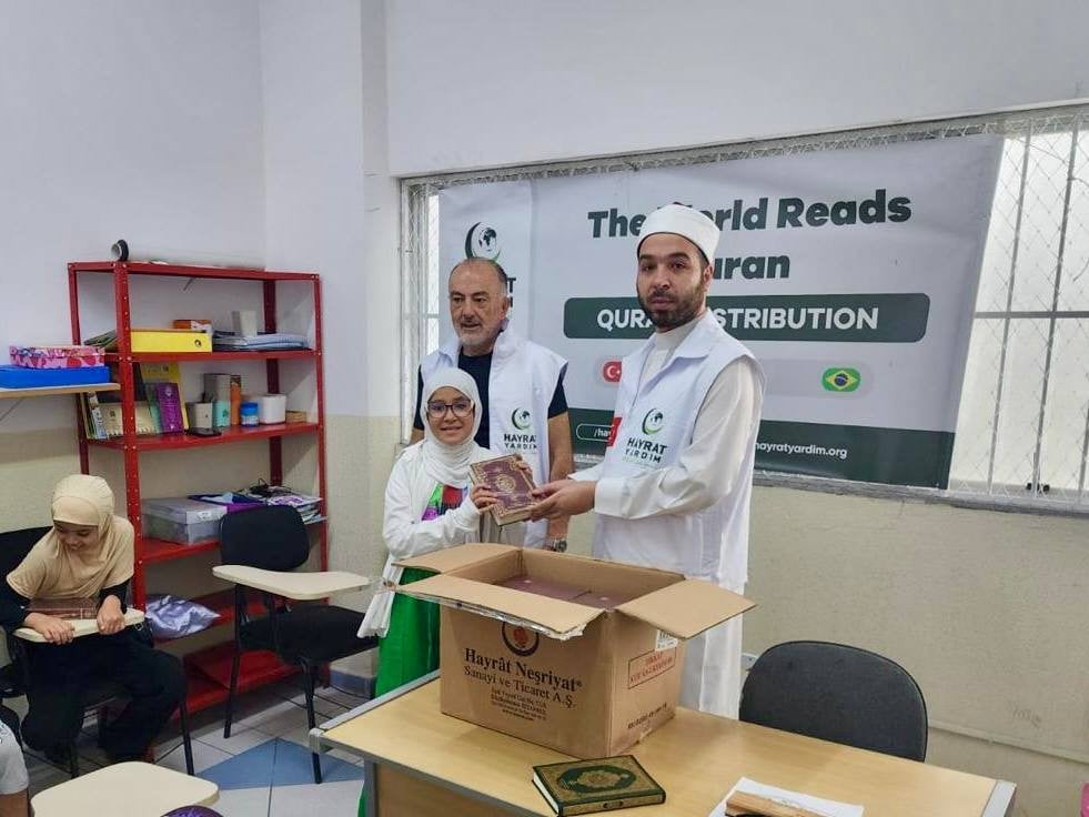 Son olarak Türkiye’den 10.750 kilometre uzaklıkta bulunan, Güney Amerika kıtasının önemli ülkelerinden Brezilya’da ihtiyaç sahiplerine Kur’an-ı Kerim dağıtımında bulunuldu. Böylelikle ülkenin önemli kentlerinden biri olan Sao Paulo’da, ihtiyaç sahibi erkek ve kız öğrencilere 1000 adet Kur’an-ı Kerim ulaştırıldı. Ramazan ayındaki bu anlamlı organizasyondan yararlanan çocuklar, dernek gönüllülerine teşekkürlerini ilettiler.