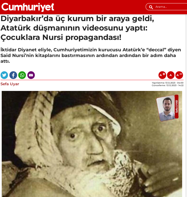 Cumhuriyet gazetesinden Sefa Uyar, asrın alimi Said Nursi Hazretleri'ni çirkin sözlerle hedefe koydu.