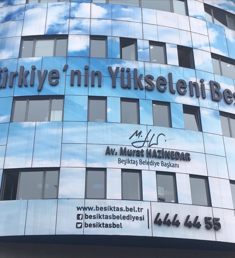 Yolsuzluk soruşturması nedeniyle, İçişleri Bakanlığı tarafından görevinden uzakaştırılan Beşiktaş eski Belediye Başkanı Murat Hazinedar'ın belediye binasındaki ismi ve imzası silindi.