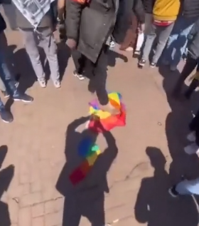 Eylemi gerçekleştiren taraftarlar 'Kürtlerin aile yapısını bozmanıza izin vermeyeceğiz. Avrupalı kapitalistlerden aldığınız fon paralarıyla burada sosyalizmcilik oynamayın' diye bağırmışi LGBT bayraklarını yırtarak atmışlardı.
